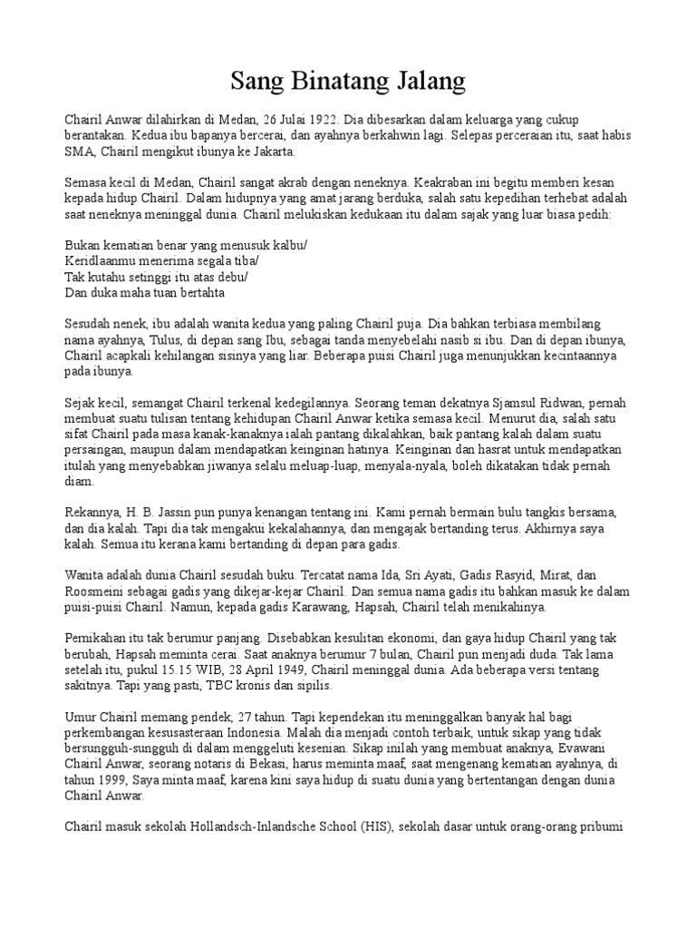 Ia juga dikenal sebagai Si Binatang Jalang dalam karya-nya yaitu Aku. Nov 23 2019 Halo pengunjung blog sekalian salam jabat tangan atas pertemuan ini. Puisi itu mengemukaan duka yang dalam dan kekaguman kepada neneknya yang telah meninggal dunia.