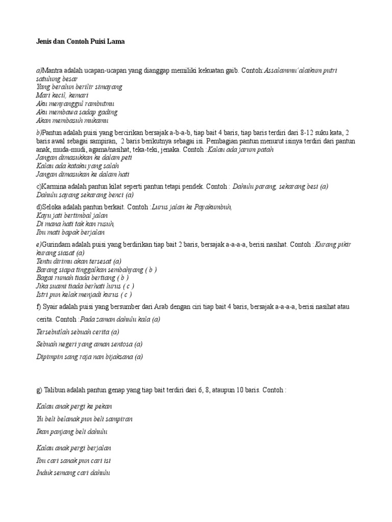 Puisi lama syarat akan kaidah penulisan puisi ada yang bersajak aaaa memiliki irama dll. Perbedaan puisi syair dan gurindam. Puisi tercipta oleh seseorang yang terlatih dalam olah indra rasa pikiran dan imajinasi.