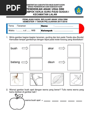 Contoh rpph paud tema tanaman obat. Contoh soal tk tema tanaman. Contoh soal evaluasi anak tk contoh soal dan materi.